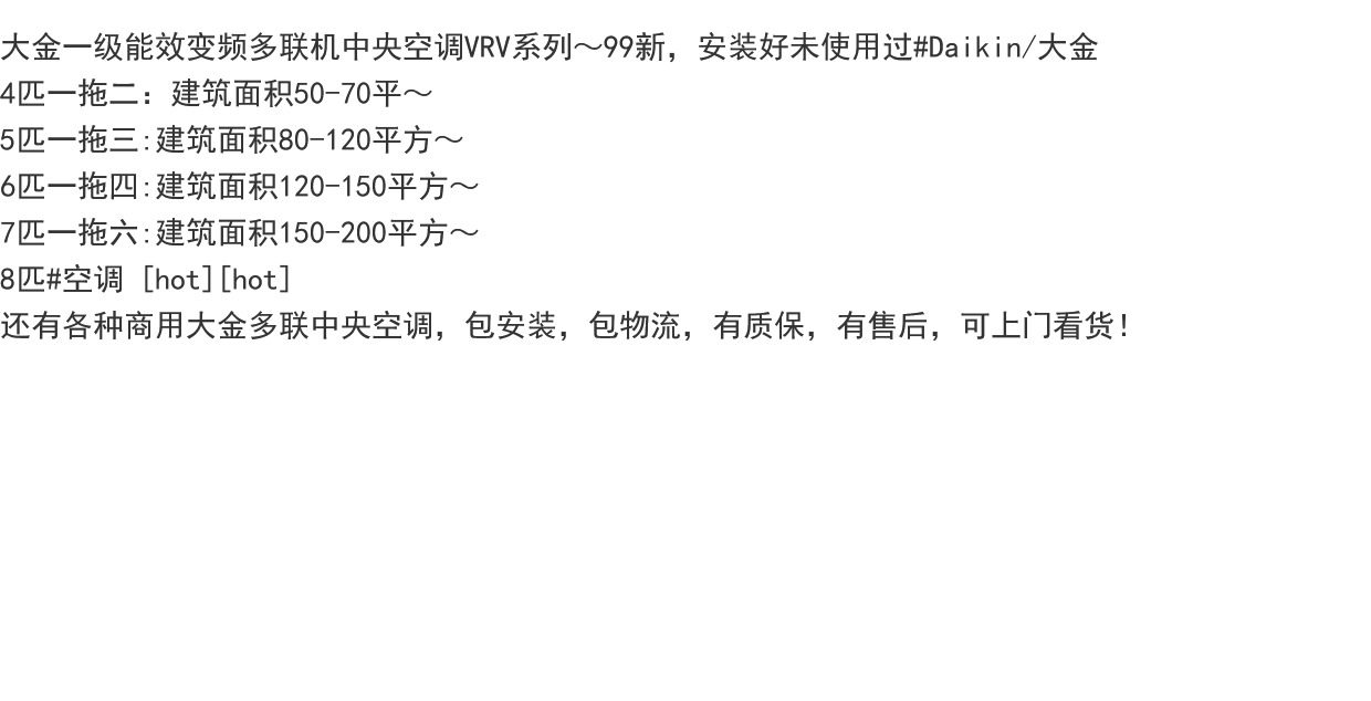 首页 > 二手空调 > 大金二手空调VRV家用多联机1级变频R410A雪种内机可自由匹配
