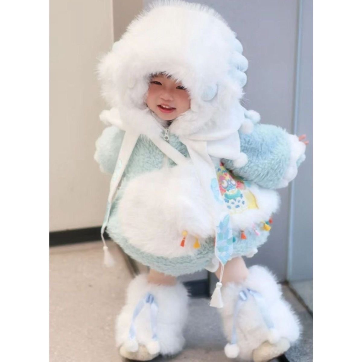 首页 > 梦幻童装 > 女童可爱加绒加厚2025冬装儿童时尚设计感皮草外套加绒小恐龙套装